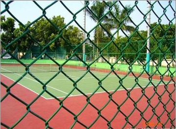 球場圍網(wǎng)表面處理:圍網(wǎng)采用PE/PVC包塑絲,立柱、邊框采用噴塑、浸塑處理